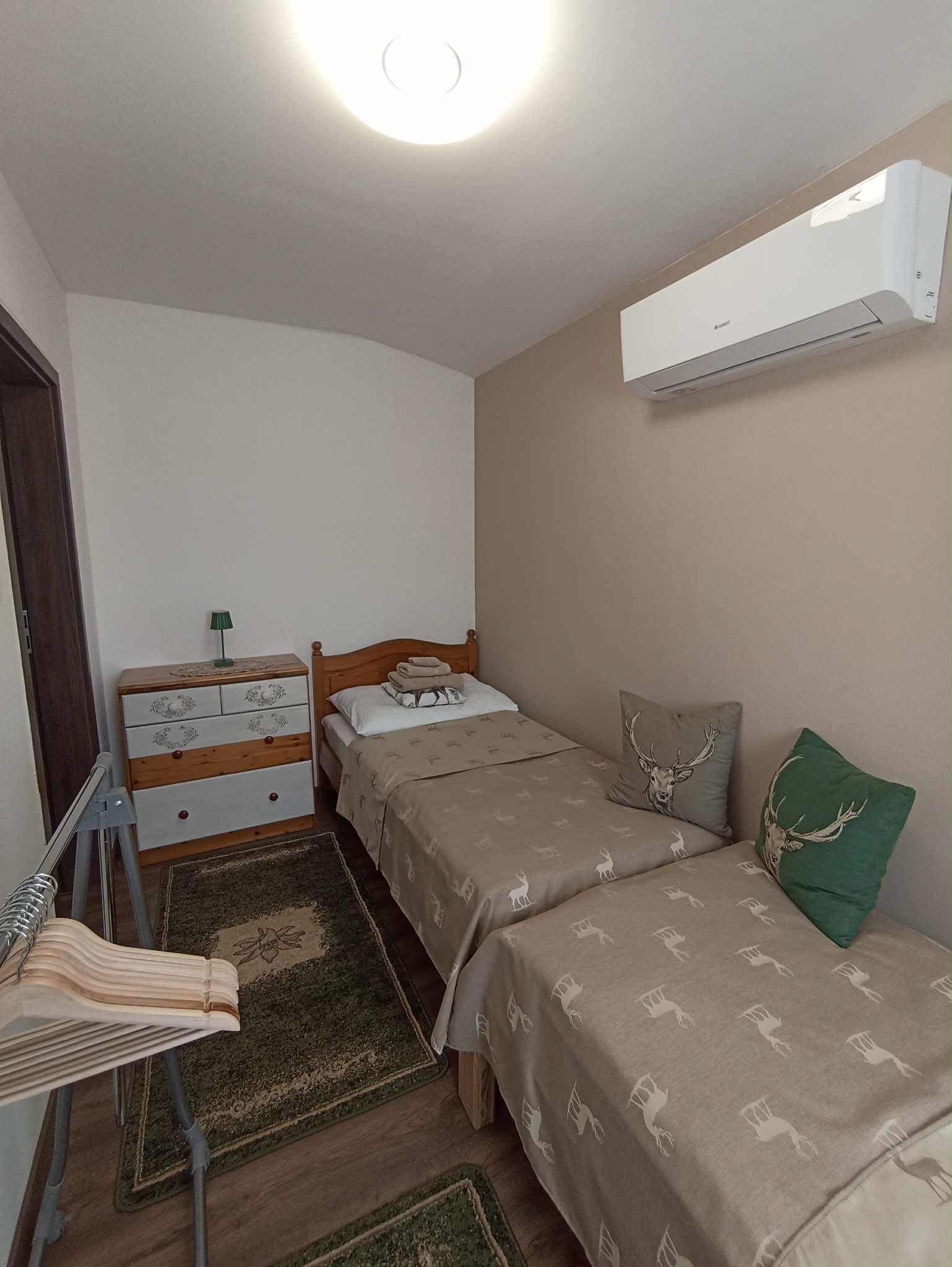 A ház 4+2 személy számára biztosít kényelmes helyet. A szobában 2 egyszemélyes ágy, valamint a nappaliban 2 kinyitható kanapé áll rendelkezésre.